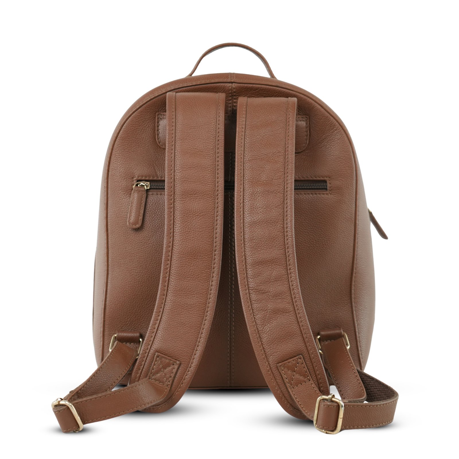 A sleek, brown textured leather backpack that combines hands-free convenience with premium style.