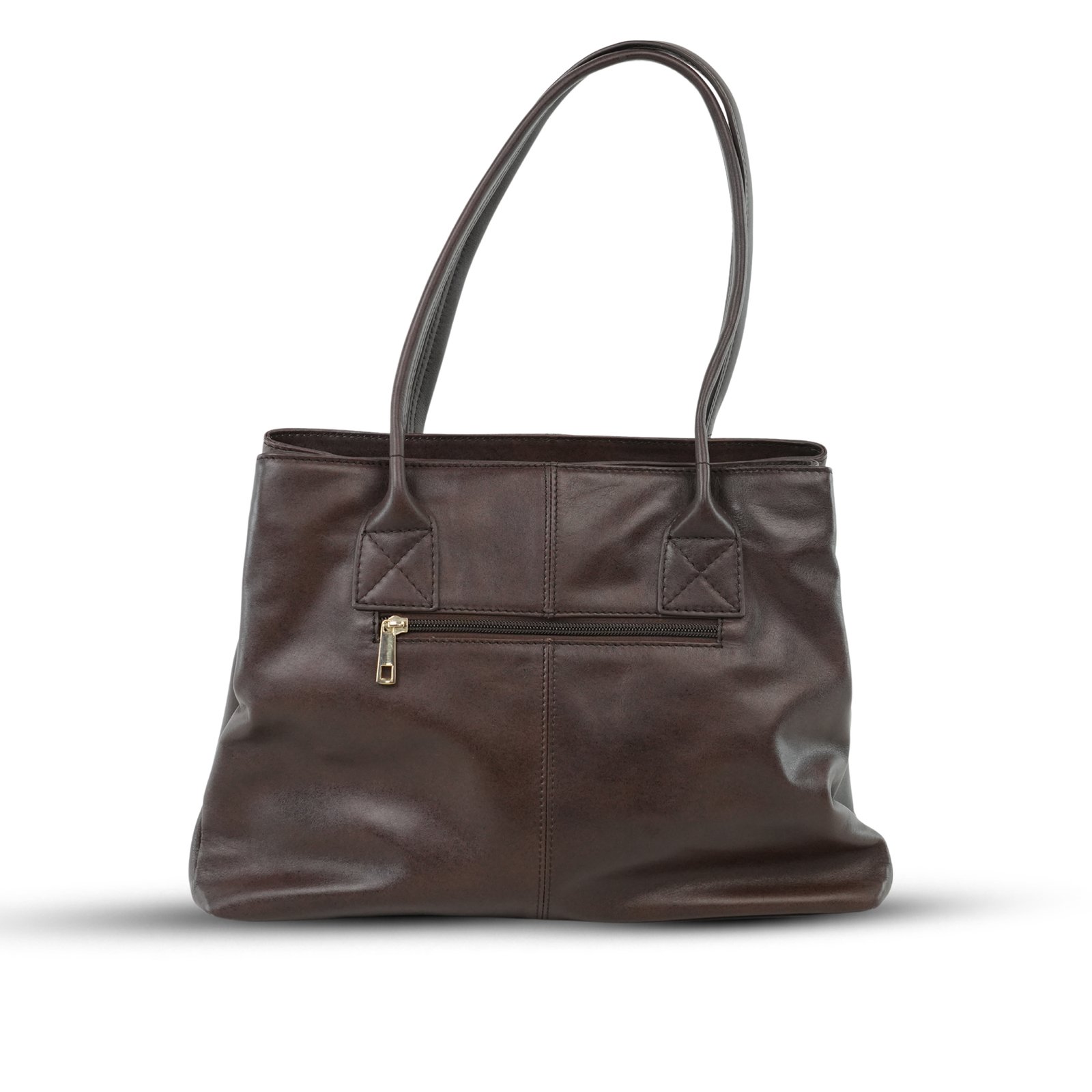 Designed with a clean front flap and secure closure, this handbag offers a structured yet practical layout. The rich brown color gives it a classic and versatile look that pairs perfectly with both traditional and western outfits.