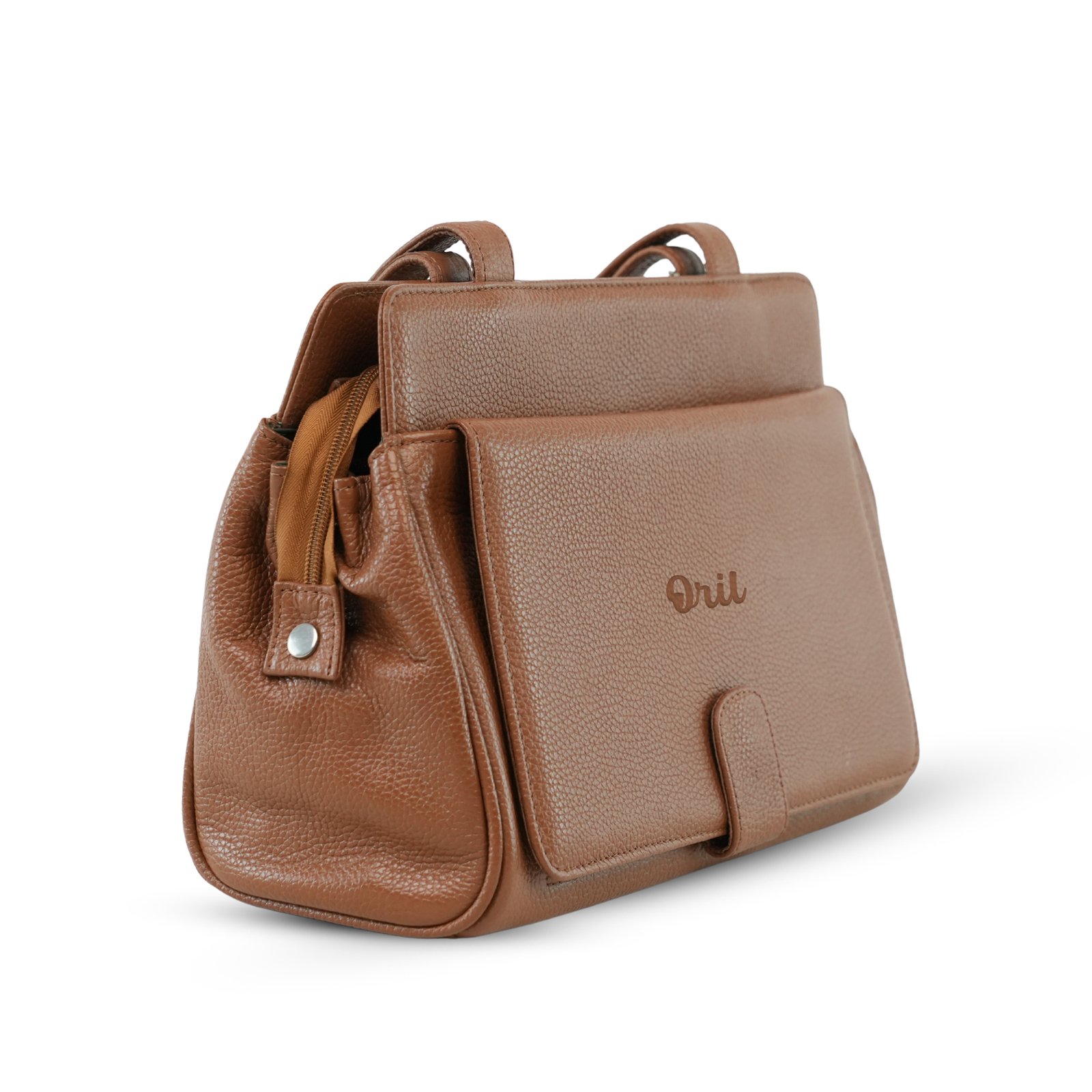 Designed with a clean front flap and secure closure, this handbag offers a structured yet practical layout. The rich brown color gives it a classic and versatile look that pairs perfectly with both traditional and western outfits.